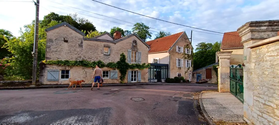 Nous avons logé, dans un gite pour 4 personnes (2 chambres de 2) totalement remis à neuf. Il était magnifique, fait de bois et de pierre. Nous n'avons pas dû payer de supplément pour Plume. Le village est très calme et la balade du soir y fût très agréable.