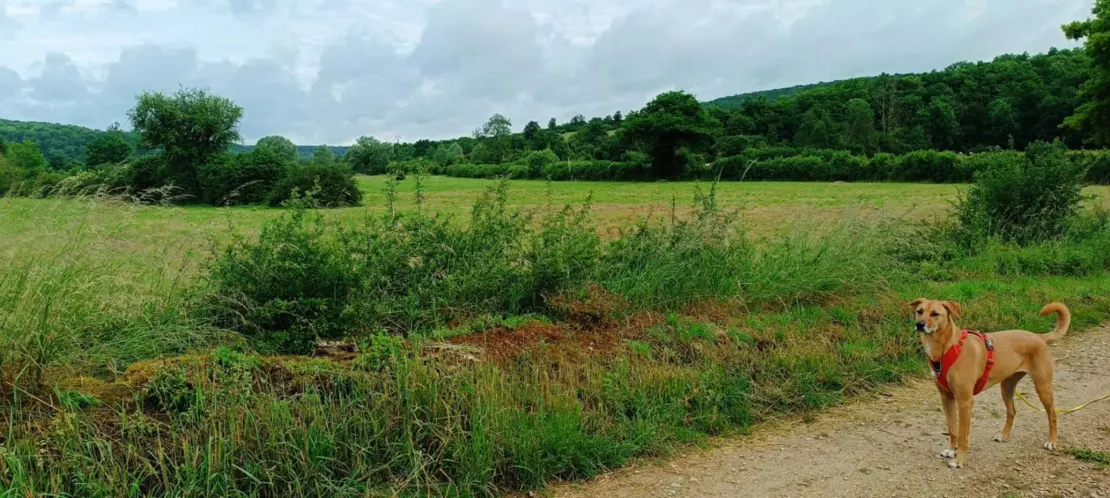 Pour la balade du matin, nous avons trouvé un itinéraire d'une heure à 10 minutes du logement, nous avons parcouru 4.8 km pour 110m de D+ sur un mix de routes en cul de sac, chemins de champs et forêt. Les chemins sont très praticables et la balade, de ce fait, plutôt facile.