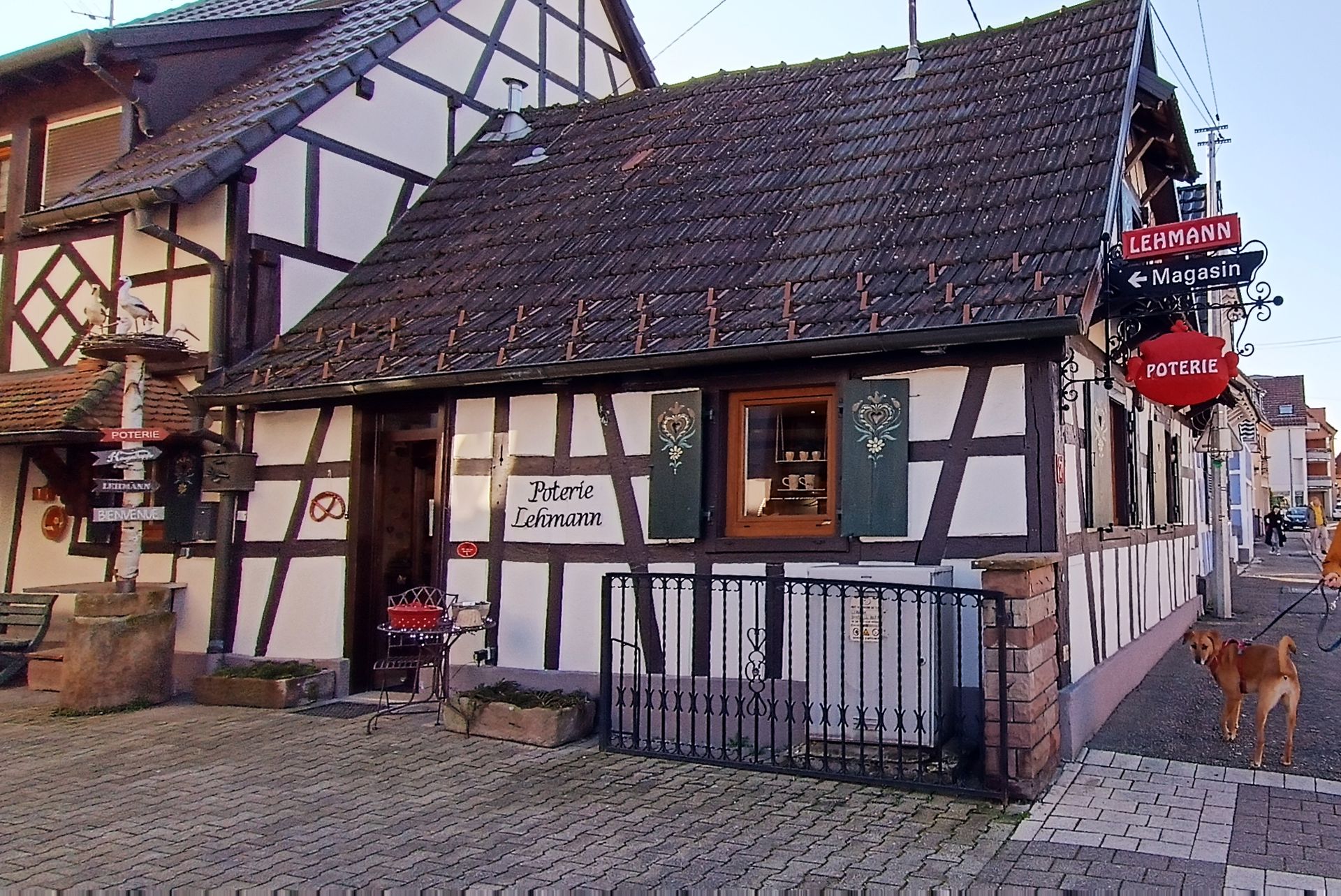 Comme les autres jours, après la promenade nature du matin, nous nous sommes rendus "en ville" pour une visite. Nous avions choisi Soufflenheim qui met en avant un tour des potiers. Nous avons été franchement déçus et ne le recommanderions pas forcément. En effet, la ville en elle-même a beaucoup moins de charme que les multiples villes et villages aux alentours, mais en plus de cela, nous n'avons pas été convaincus par la plupart des magasins. Si l'on devait conseiller l'une des poteries, ce serait la Poterie Graessel dont le travail nous a paru plus moderne que chez les autres.