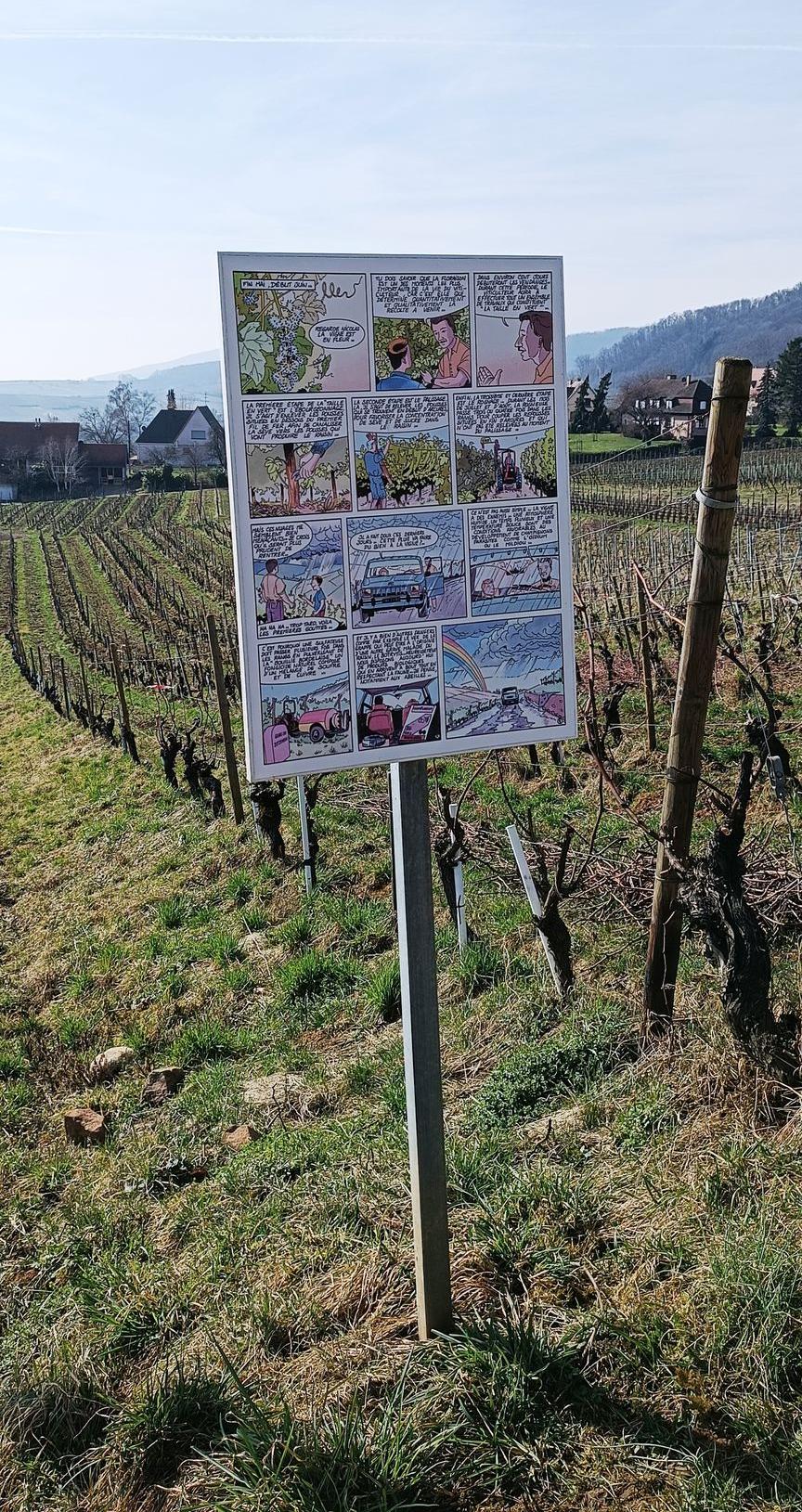 En route vers le sud pour la vallée de Munster, nous nous sommes arrêtés à Mittelberheim, également parmis les plus beaux villages de France. Nous avons commencé par y faire une randonnée de 12km et 375m de D+ Celle-ci démarre du parking du Zotzenberg, passe par les ruines du château de Haut-Andlau, ainsi que celles du château du Spesbourg. Elle peut être écourtée et faite avec des enfants car elle est assez ludiques entre ses planches de bd éducatives, ses sculptures en bois, et le premier château.